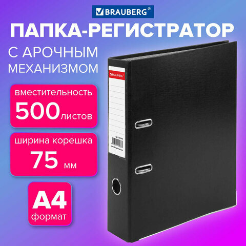 Папка-регистратор покрытие пластик 75 мм прочная с уголком BRAUBERG черная 226595