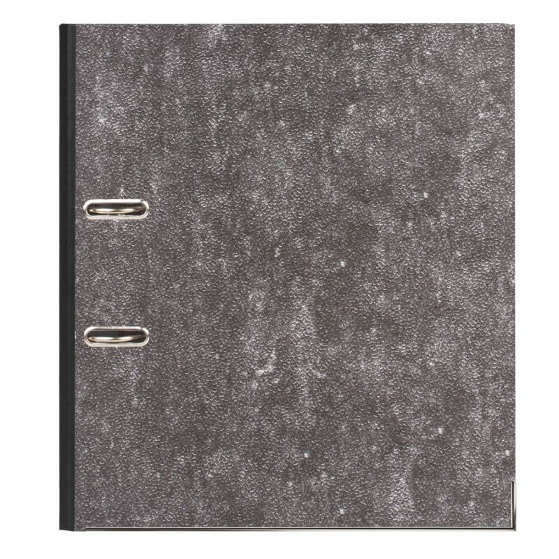Папка формата А4 с вертикальной ориентацией изготовлена из высококачественного износоустойчивого картона с покрытием под мрамор. Нижние края папки защищены металлическими уголками, что увеличивает срок службы в 2 раза. Прорези для колец на внешней крышке позволяют оставаться папке закрытой даже при большом количестве бумаг, а надежный арочный механизм легко справляется с ежедневными нагрузками. Корешок снабжен этикеткой для маркировки содержимого, что позволяет структурировать информацию.