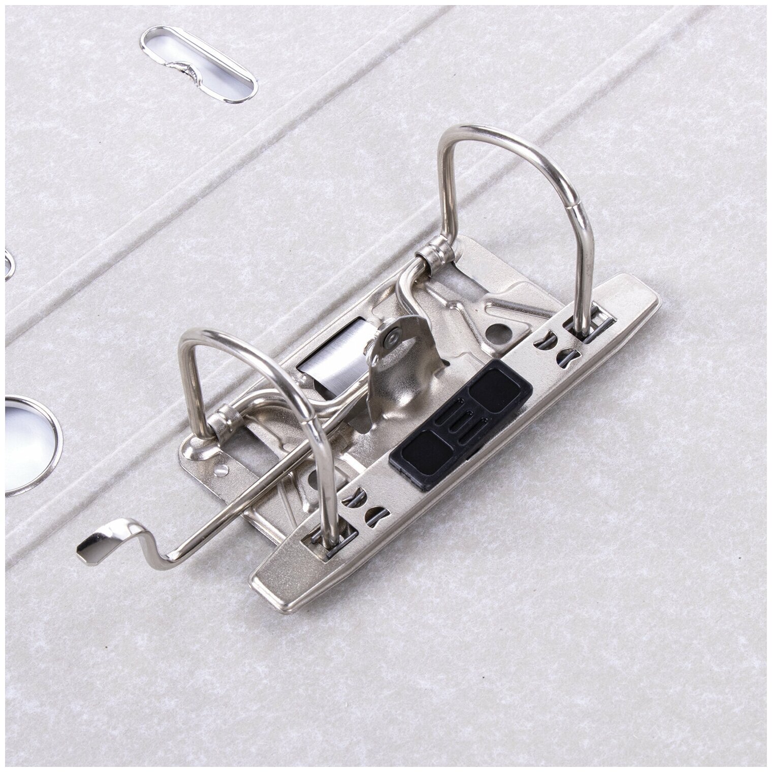 | Прочие особенности и свойства | Изготовлена из плотного картона с долговечным, экологичным полипропиленовым покрытием Внутренняя оклейка бумажная.,,Благодаря прорезям для колец на внешней крышке папка-регистратор остается закрытой даже при большом количестве бумаг.,,Полипропиленовое покрытие не имеет резкого запаха, более долговечное, морозоустойчивое.,Металлический протектор нижней кромки- да |
