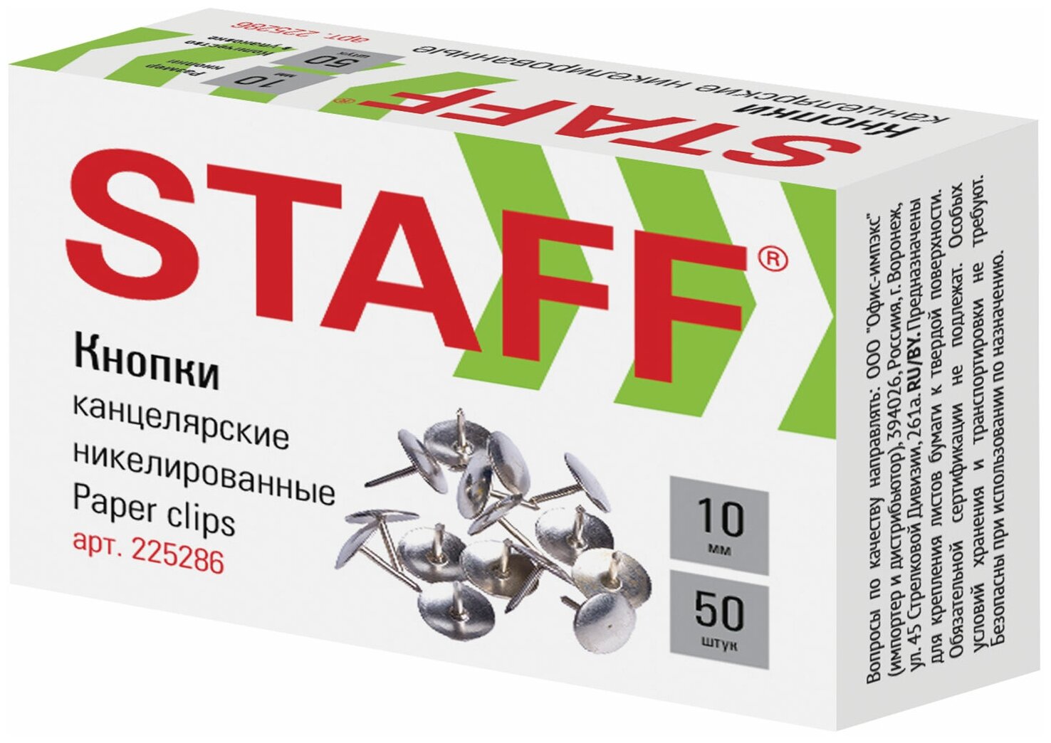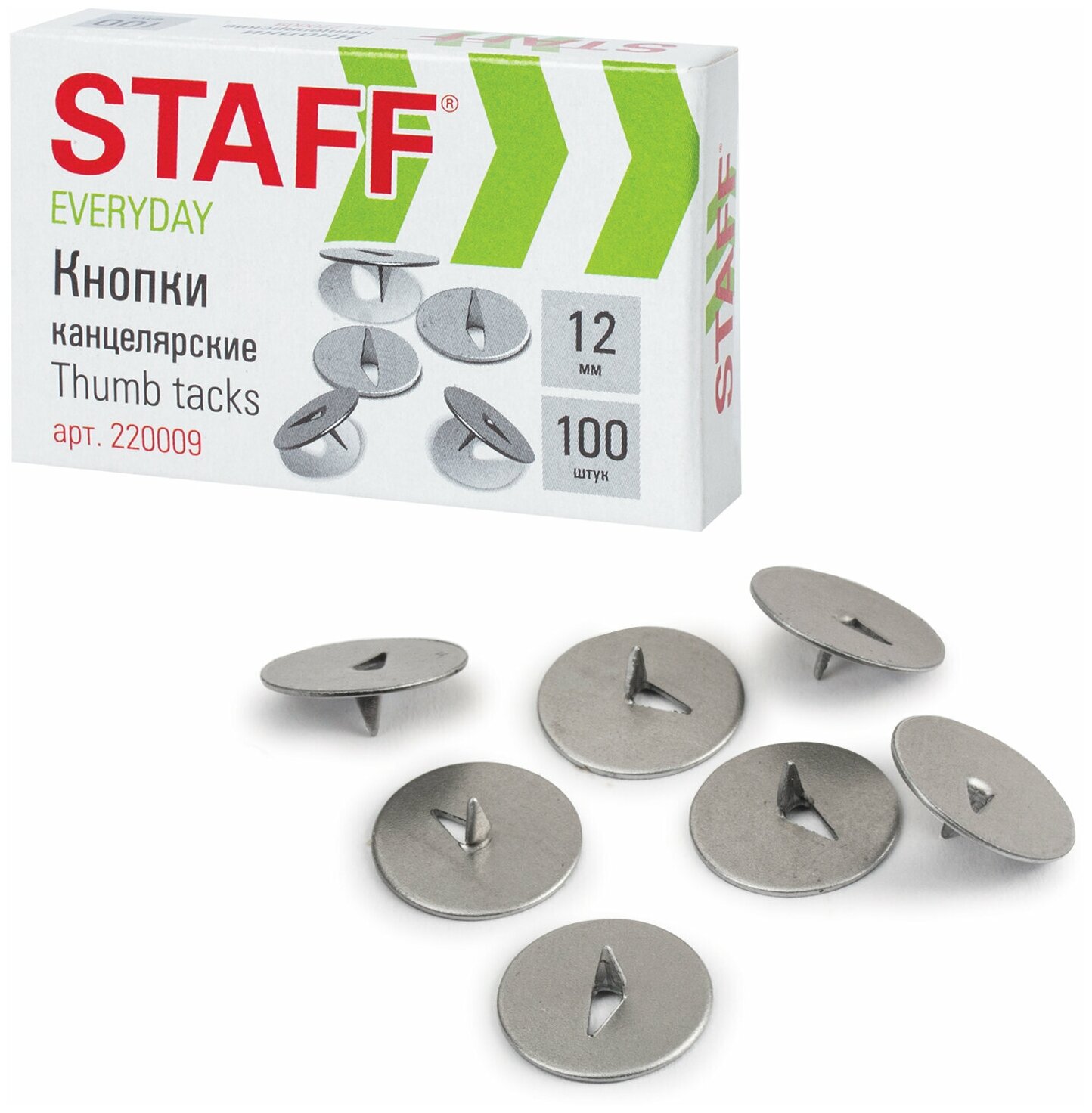 На сегодняшний день товар «STAFF Кнопки канцелярские никелированные 10 мм 225286 серебристый» можно купить с кешбеком в 1 магазине: Яндекс.Маркет