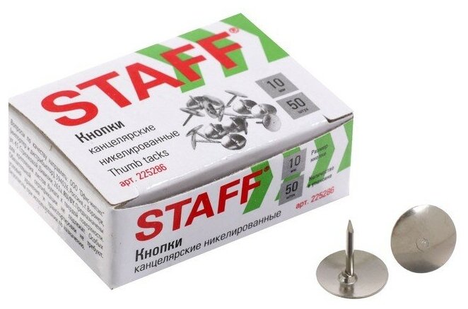 STAFF Кнопки канцелярские никелированные 10 мм 225286 серебристый