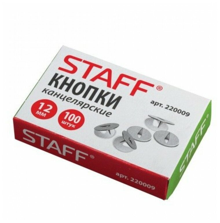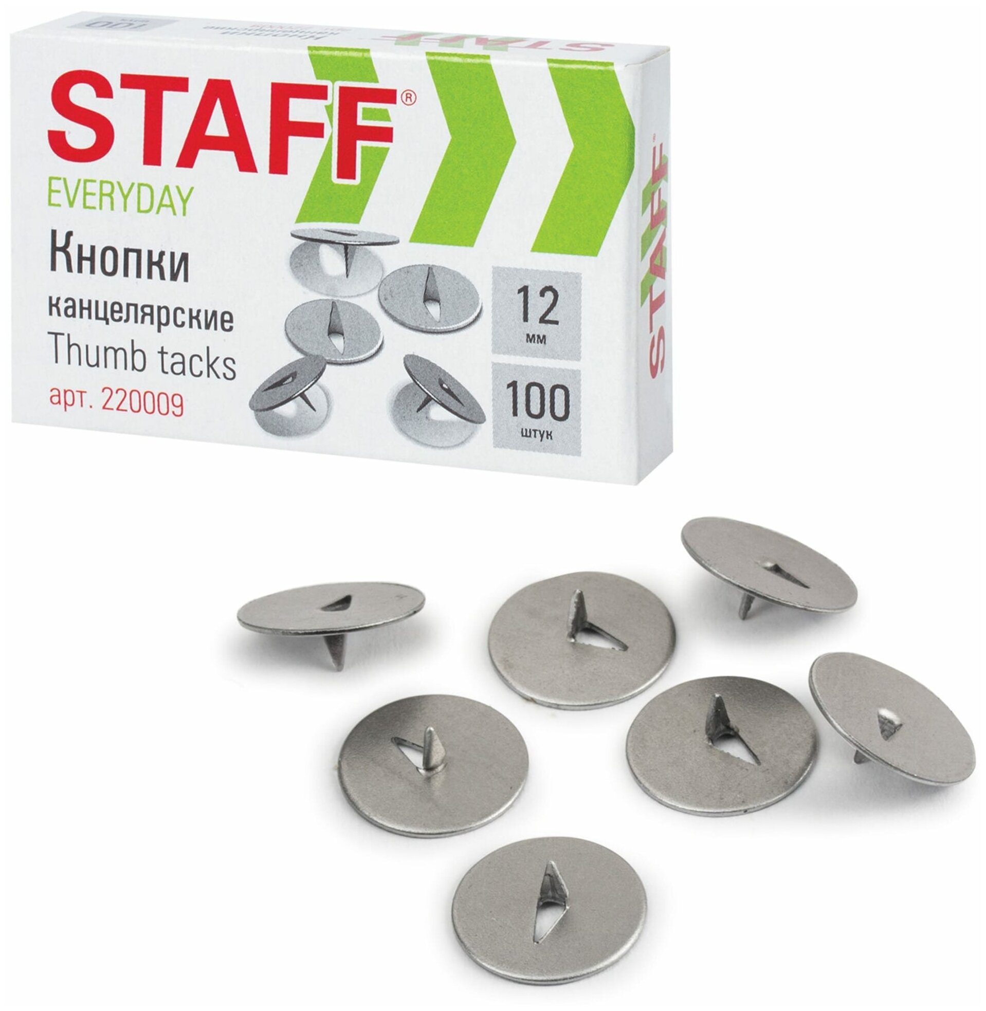 Кнопки канцелярские STAFF "EVERYDAY" 12 мм х 100 шт россия в картонной коробке 220009