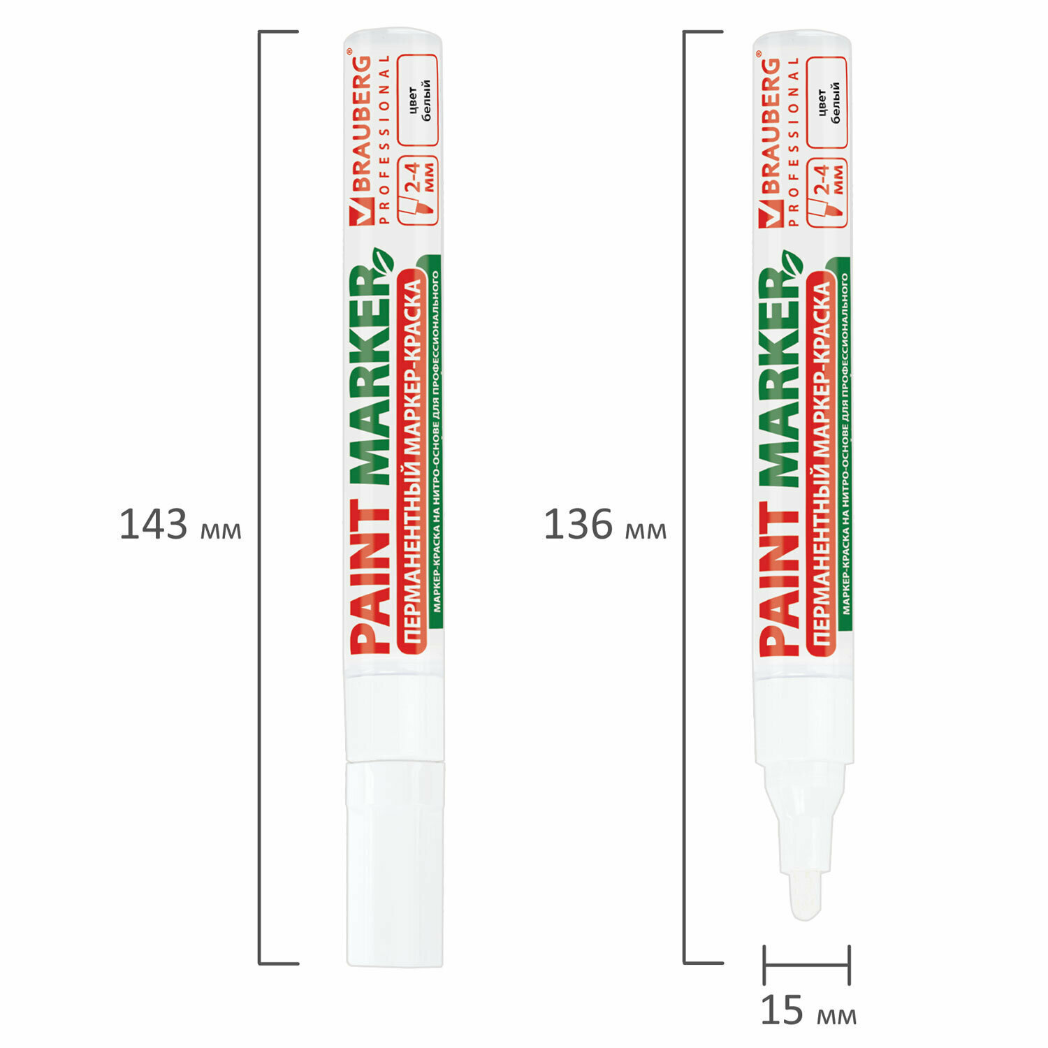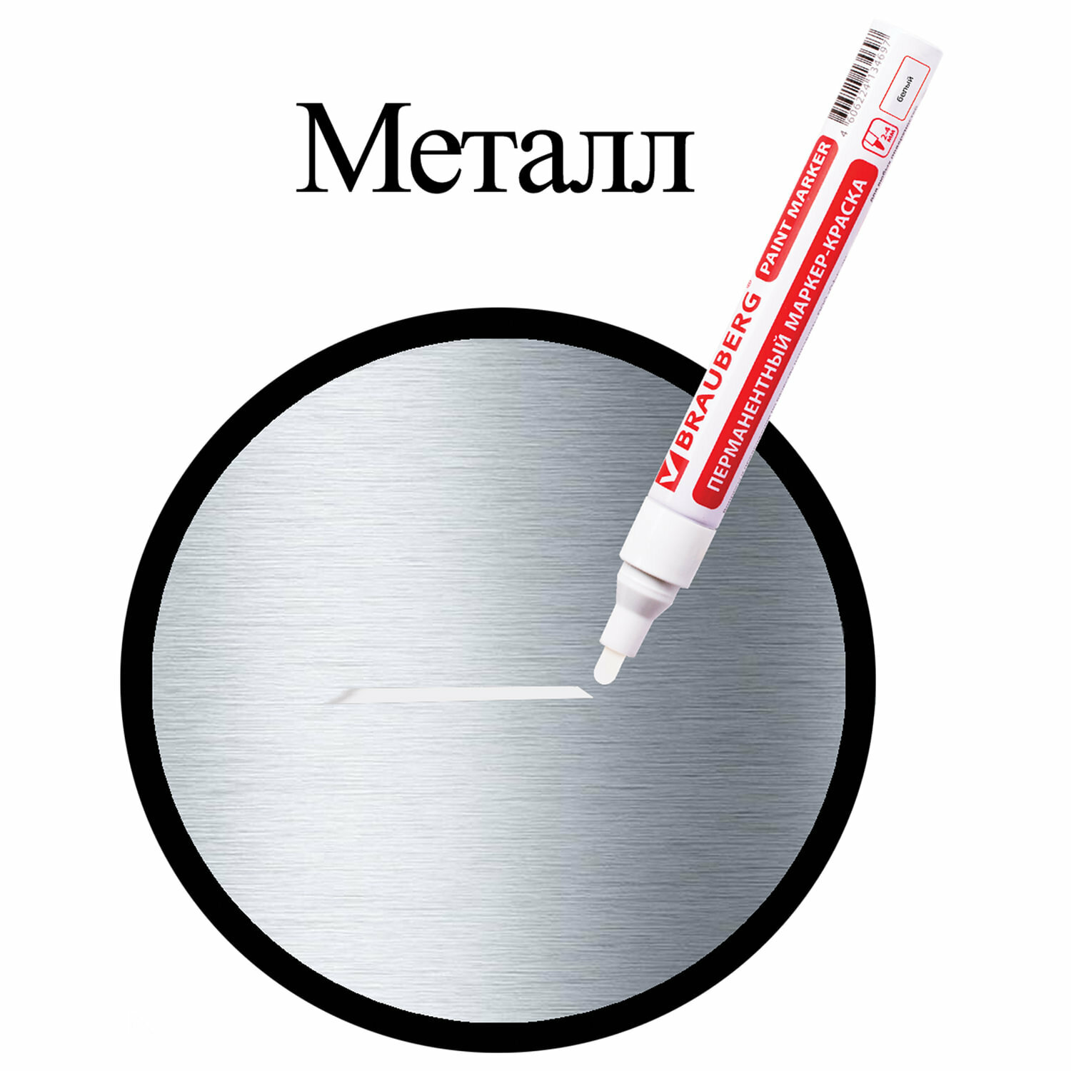 Маркер-краска лаковый (paint marker) 4 мм белый без ксилола (без запаха) алюминий BRAUBERG PROFESSIONAL 150878
