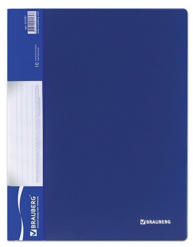 Папка 10 вкладышей BRAUBERG "Office" синяя 05 мм 222625
