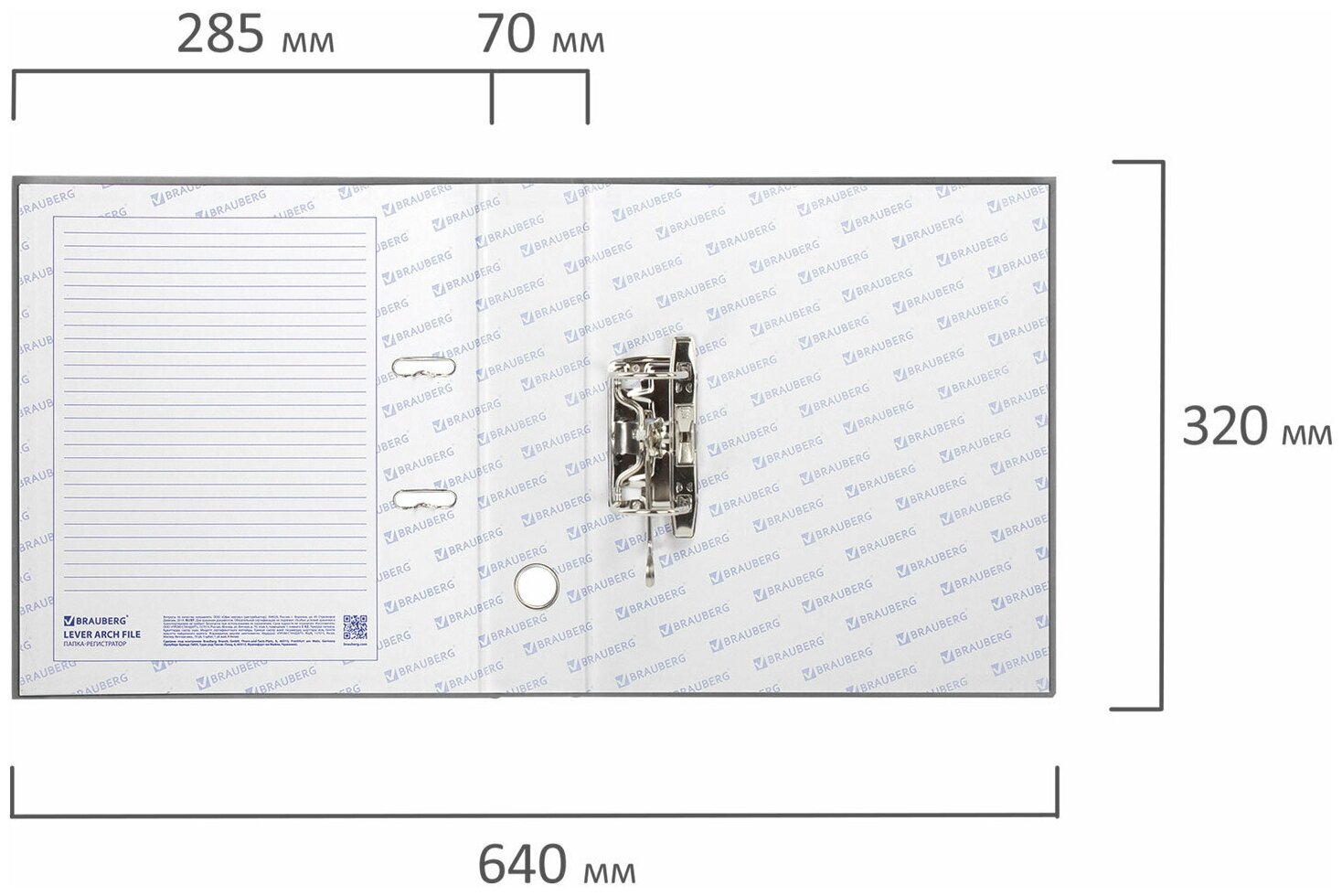 Папка-регистратор BRAUBERG с покрытием из ПВХ 70 мм серая (удвоенный срок службы) 221819