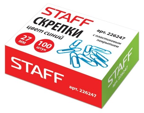 STAFF Скрепки 226247 27 мм 100 шт (100 шт.) синий 100 шт.