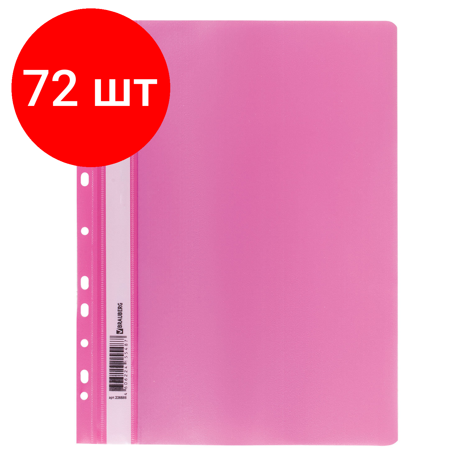 BRAUBERG Папка-скоросшиватель с перфорацией А4 пластик розовый 226585