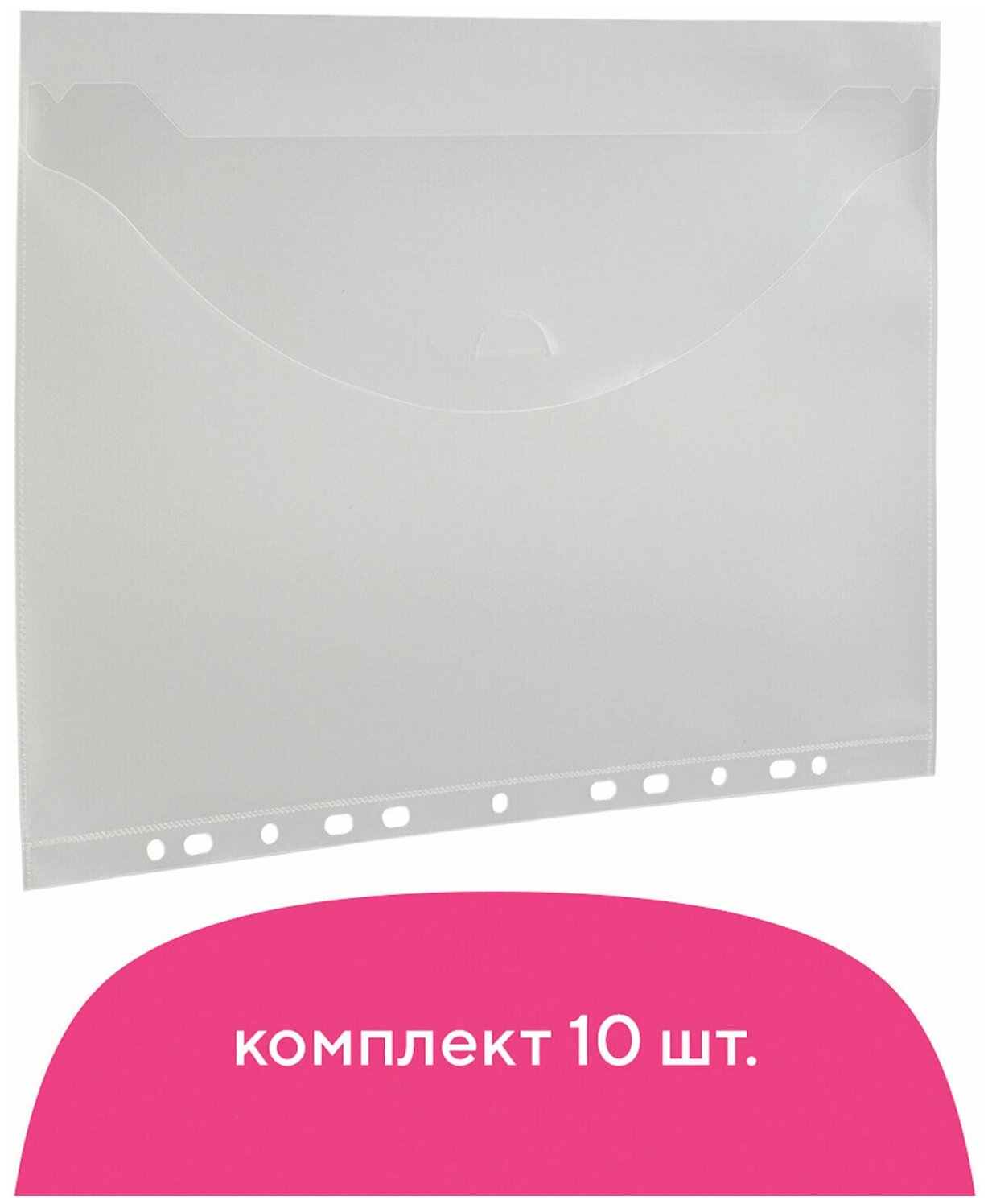 BRAUBERG Папка-конверт с перфорацией А4 150 мкм 10 шт прозрачный 227312