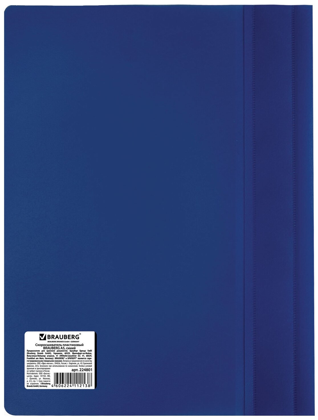 BRAUBERG Папка-скоросшиватель А5 пластик синий 224801