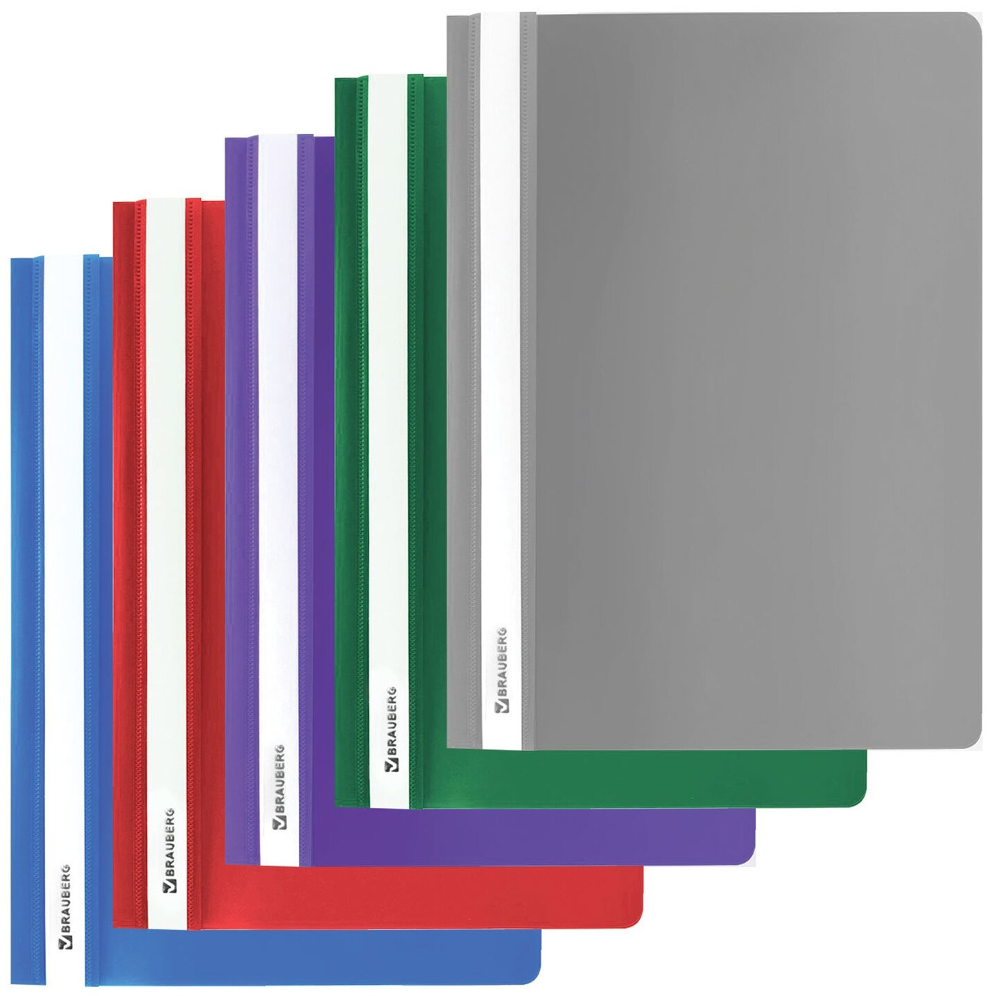 BRAUBERG Папка-скоросшиватель А4 пластик 130/180 мкм ассорти 221820
