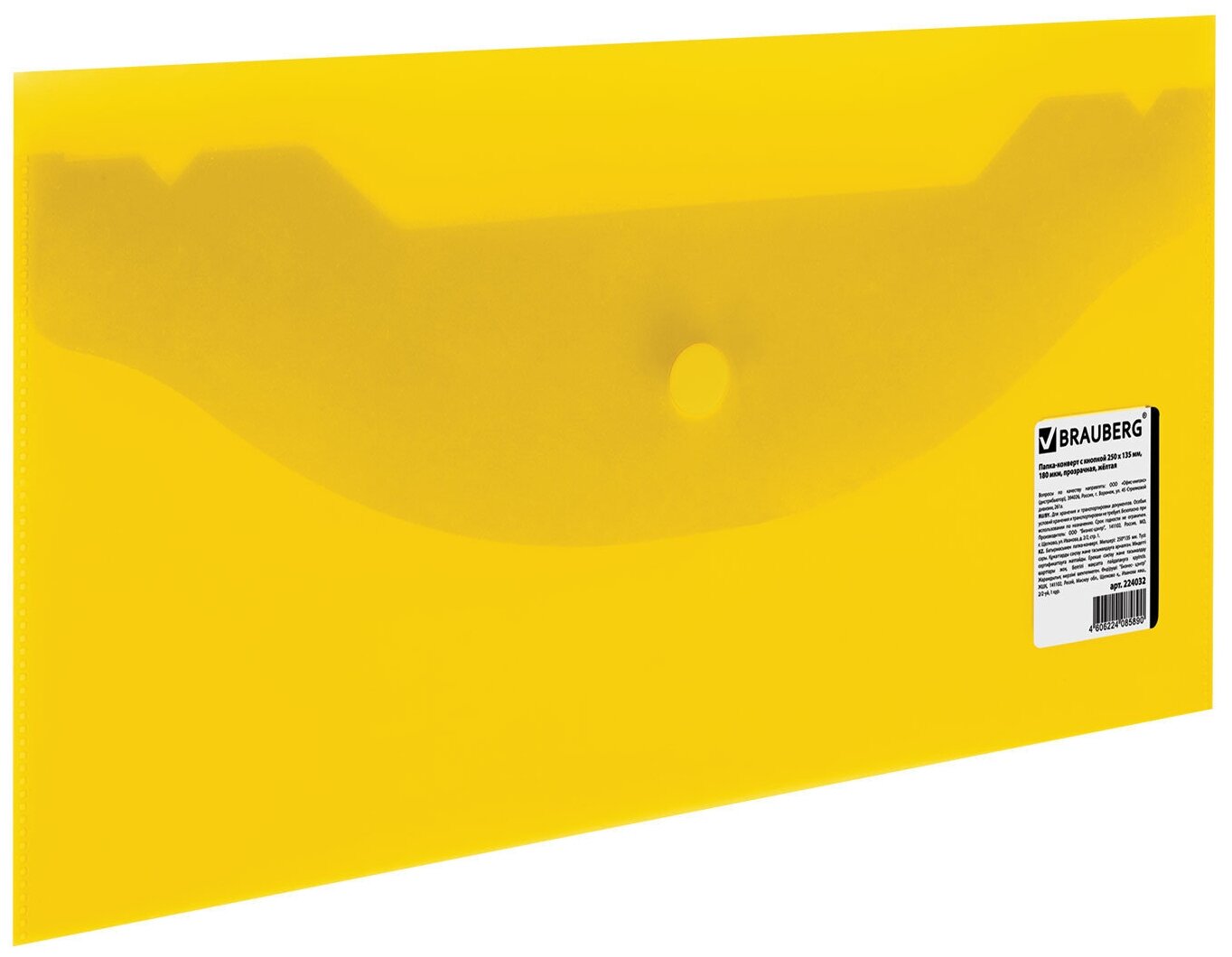 BRAUBERG Папка-конверт с кнопкой 250х135 мм полупрозрачный пластик желтый 224032