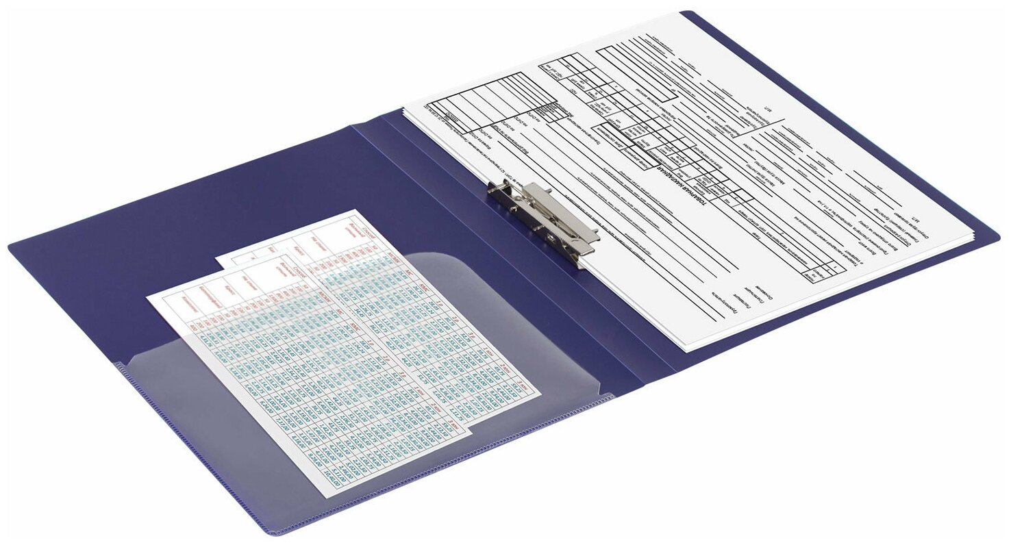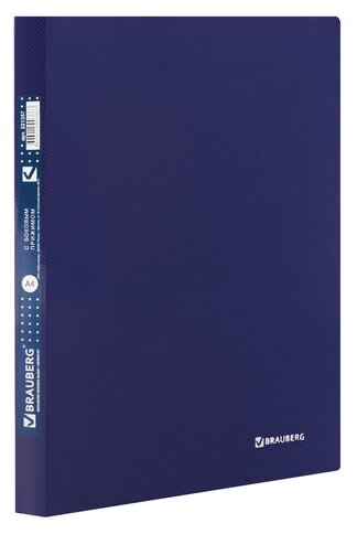 BRAUBERG Папка с боковым прижимом А4 пластик темно-синий 221357