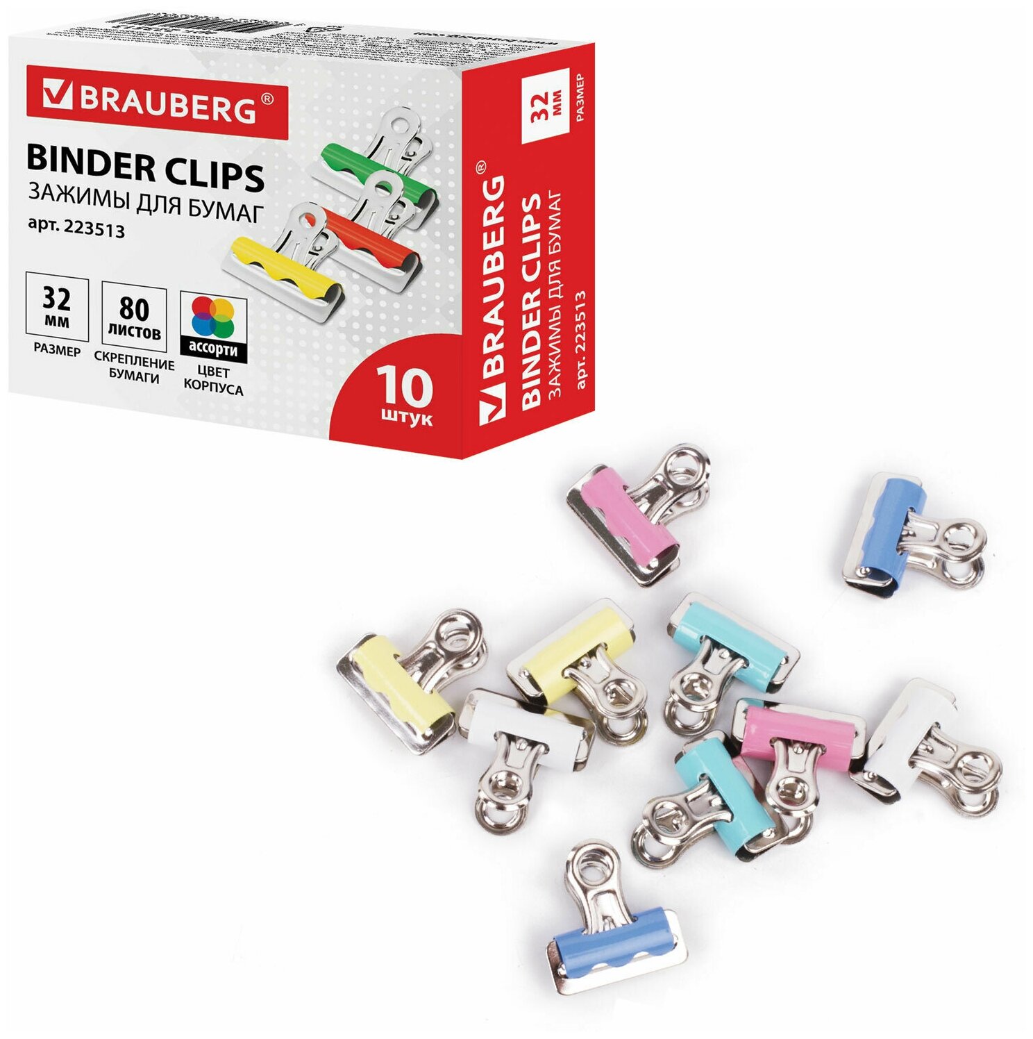На сегодняшний день товар «BRAUBERG Зажимы для бумаг 223513 32 мм разноцветный» можно купить с кешбеком в 1 магазине: Яндекс.Маркет