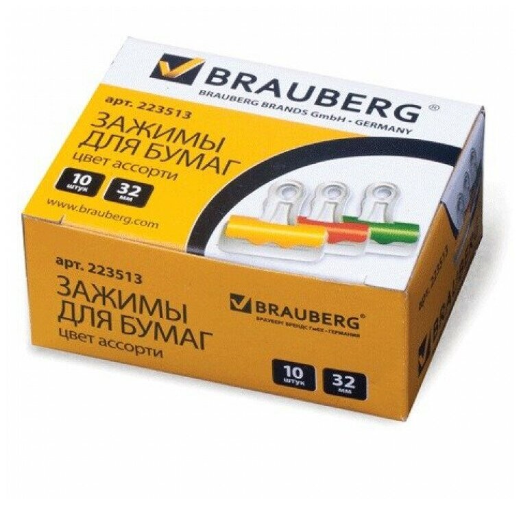 BRAUBERG Зажимы для бумаг 223513 32 мм разноцветный