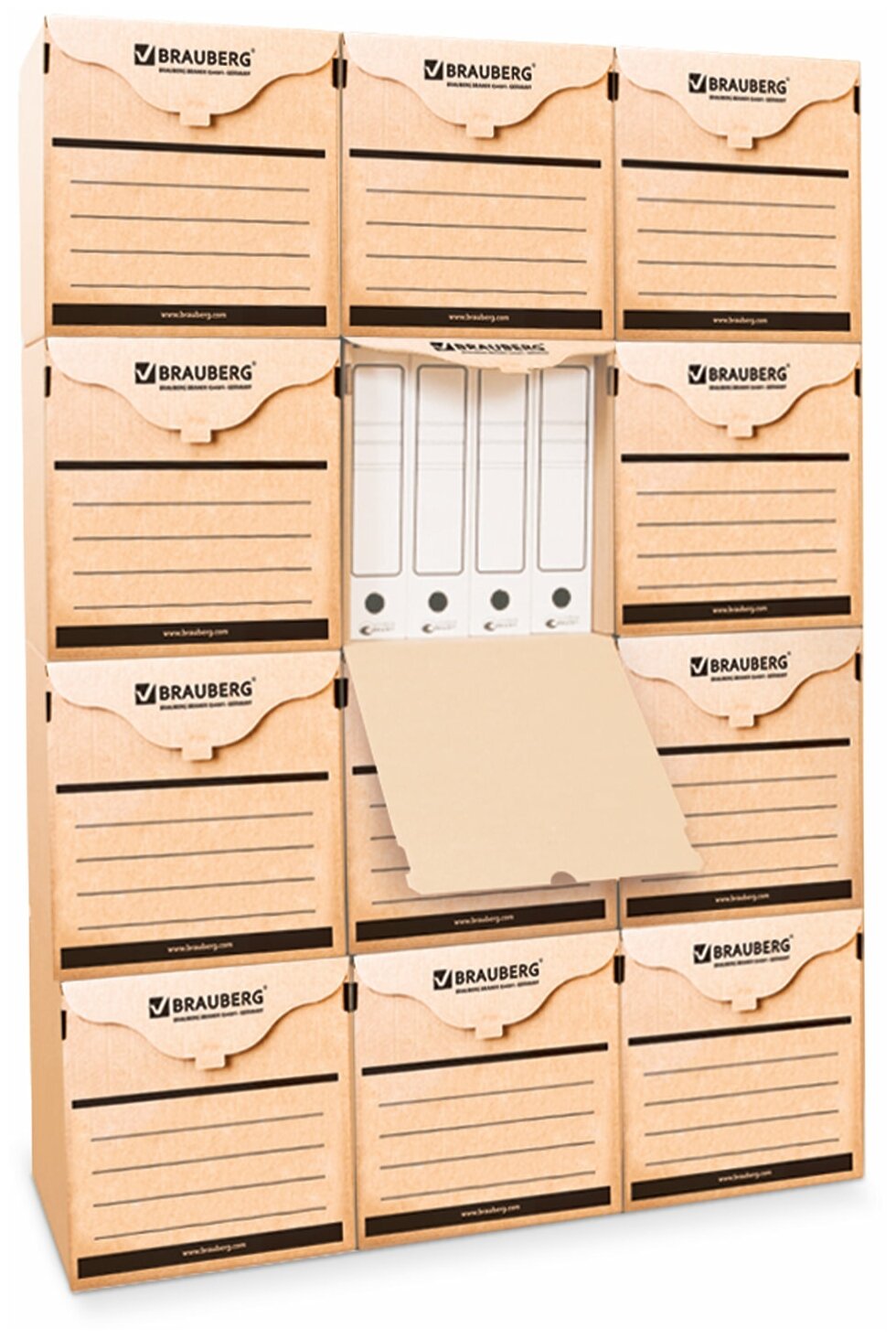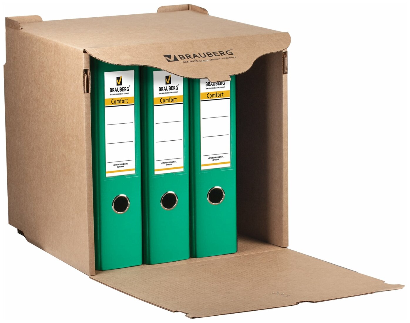 Короб архивный (330х310х340 мм) фронтальная загрузка для регистраторов/накопителей липучка гофрокартон BRAUBERG 122033 В комплекте: 1шт.