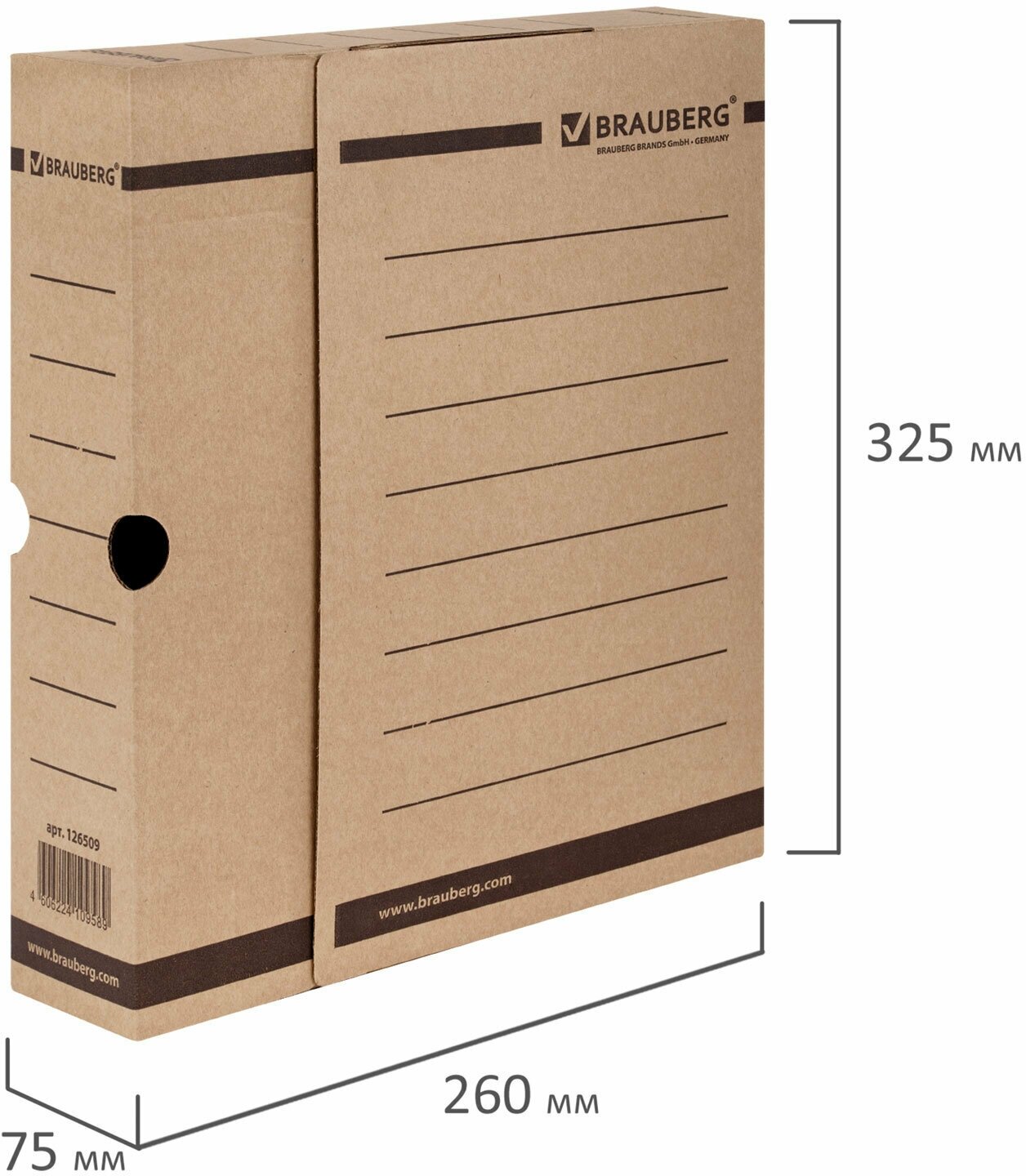 BRAUBERG Короб архивный с клапаном а4 (260х325 мм) 75 мм до 700 листов плотный микрогофрокартон brauberg 126509 10 шт.