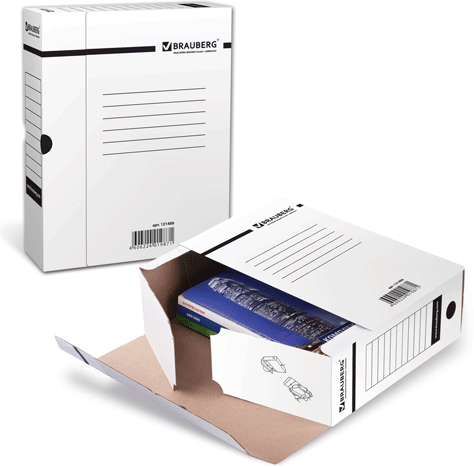 BRAUBERG Короб архивный с клапаном А4 микрогофрокартон 100 мм белый 124848