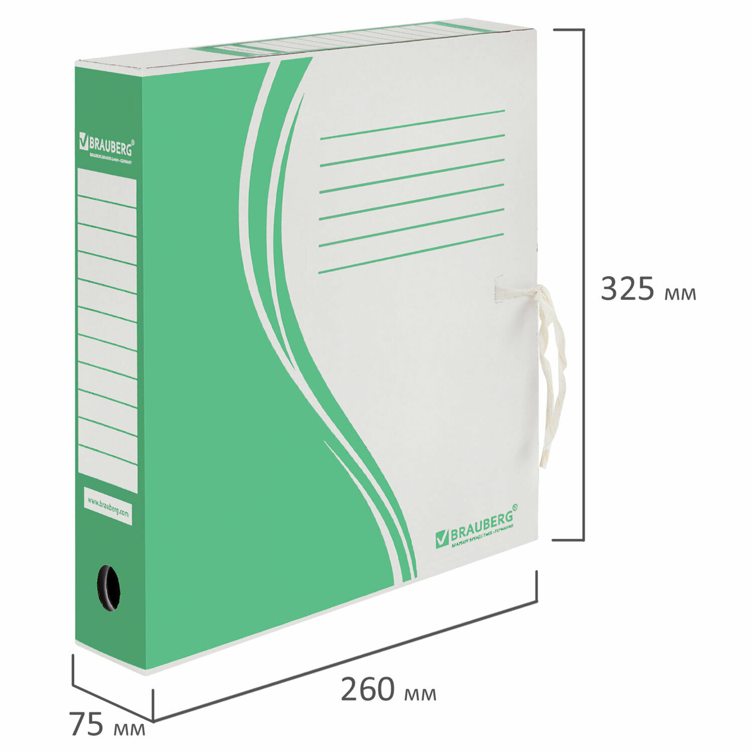 BRAUBERG Папка архивная с завязками А4 75 мм микрогофрокартон зеленый 124851
