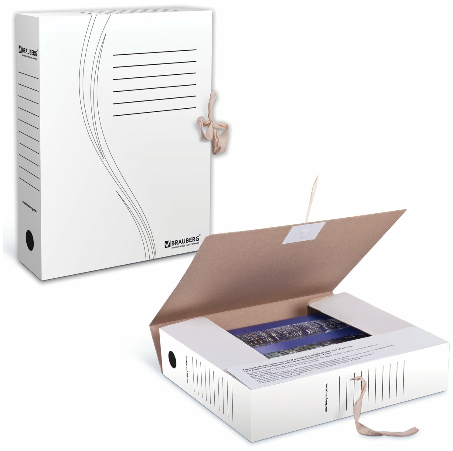 Папка архивная с завязками А4 (325х260 мм) 75 мм до 700 листов плотная микрогофрокартон белая BRAUBERG 124850 10 шт
