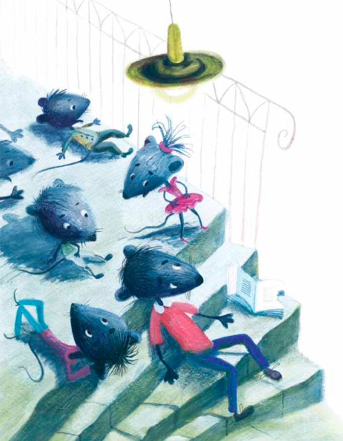 Иллюстрации милые. Особенно понравилась Старая Мышь - колоритная дама! Мышонок тоже хорош. А вот коты на фоне мышей не особенно выделяются, но это понятно - сказка-то мышиная.