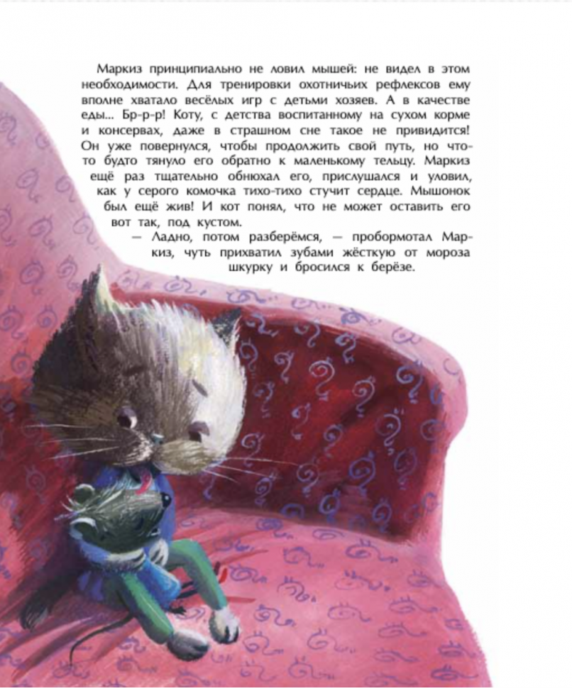 Странным в книге показалась концовка - добрый кот и девочка, которая приютила мышонка в игрушечном домике, оставили его жить в квартире. Не понятно мне это.