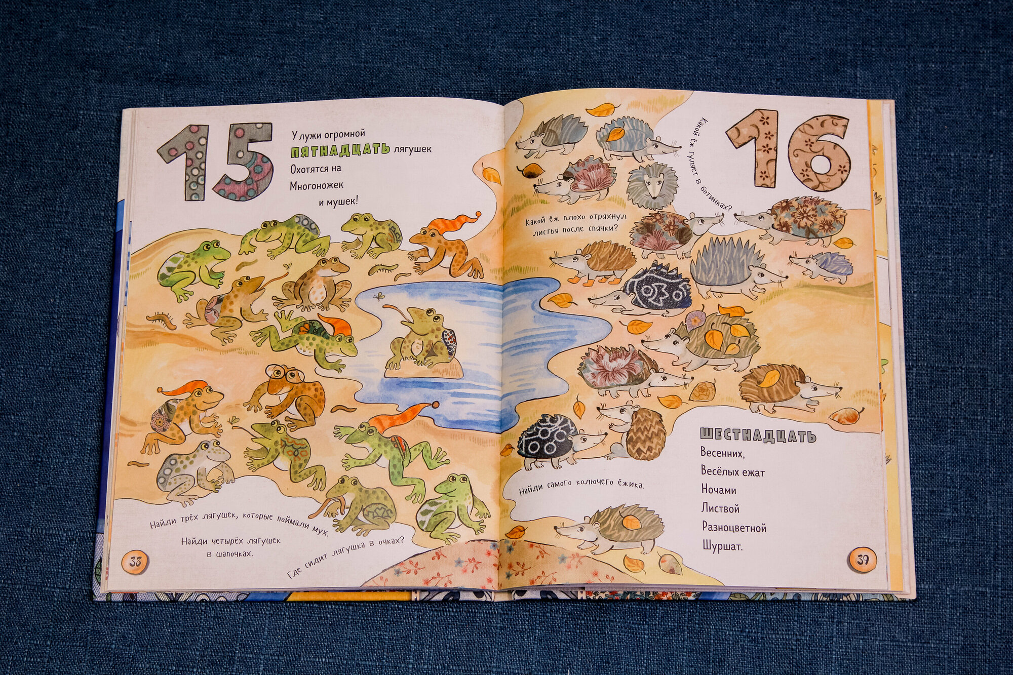 Аааа, что за красота! Это одновременно и книга на счет, и на внимательность, и еще она невероятно красивая! Если видели другие книги Даши Герасимовой, вроде "Азбуки Загадок" или "Азбуки Превращений", то она примерно в том же стиле. Еще: обязательно смотрите кармашек-вложение в конце книги!
