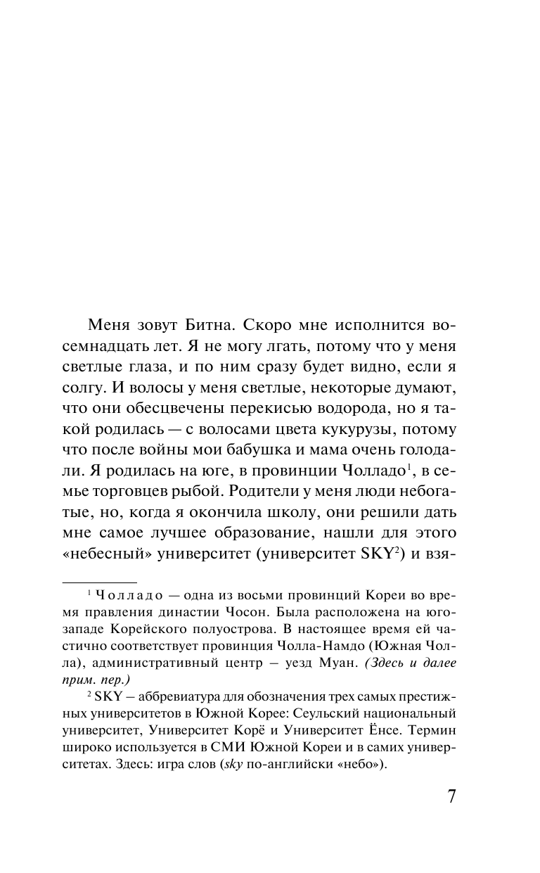 Книга совершенно не понравилась. То ли потому что я взялась за нее после Ферранте, которая душу перевернула, то ли не попала в настроение. Книга показалась плоской. Вот, вроде, автор старается переплести внутренний мир героини с Сеулом, и красиво так, поэтично переплетает, но на деле не такой уж и богатый внутренний мир у Битны. Ну, книжки читает, ну сочиняет, французский знает. Добавьте еще несчастное детство и юность и прямо героиня нашего времени. Но симпатии к ней вообще никакой нет. И ее внутренний мир, выраженный в ее рассказах, хоть и сказочный, но не впечатляет совсем. Книга - настроение автора в короткий отрезок времени.