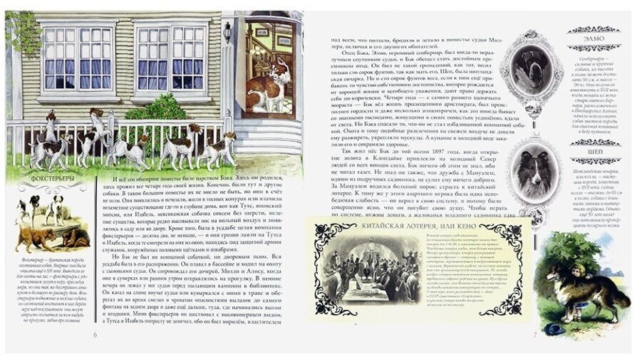 Современные иллюстрации достоверно изображают все сюжетные перипетии, а рисунки из зоологических и этнографических атласов, карты и гравюры позволяют увидеть мир, в котором оказывается Бэк, таким, каким видели его современники и сам Джек Лондон.