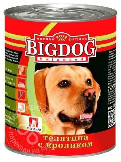 Корм для собак Зоогурман Big Dog Телятина с кроликом 850г
