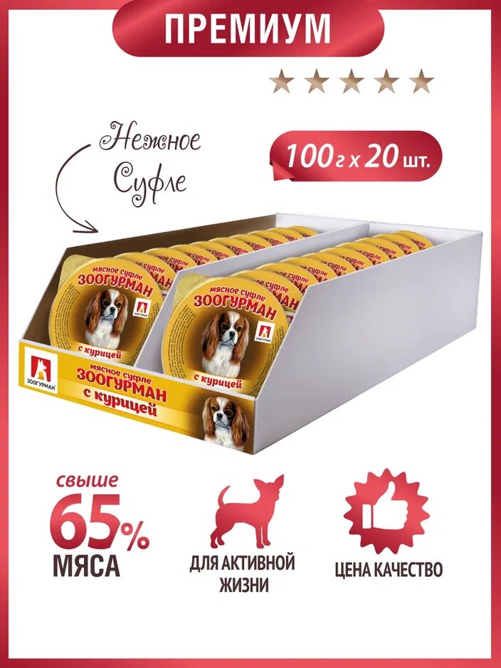 Сервис сравнения цен СкидкаГИД предлагает сравнить цены на товар «Корм для собак Зоогурман Мясное Суфле с курицей 100г»