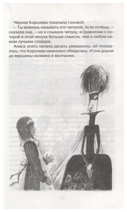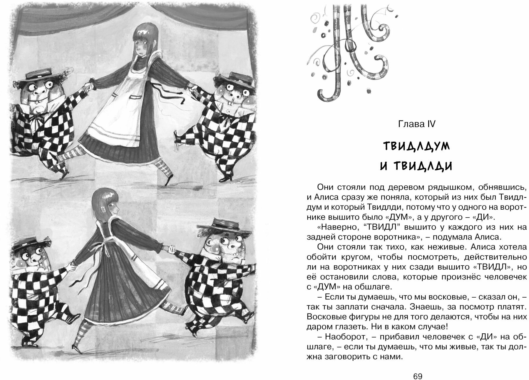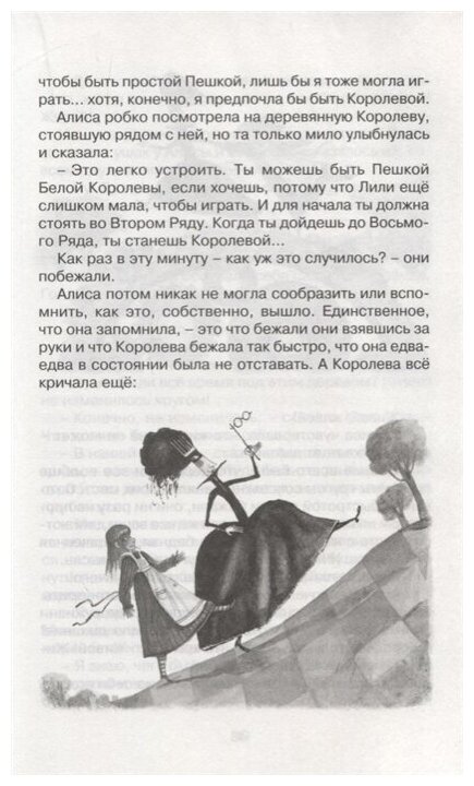 Удивительная добрая английская сказочная повесть про смышлёную и непосредственную девочку Алису, чудесным образом попавшую в зазеркальную шахматную страну, где её жизнь подчинялась шаматному порядку и она превратилась из пешки в королеву. Необычные персонажи встречаются на её пути к последней клетке: вежливые розы, слоны-пчёлы, лев с единорогом, живший на лошади рыцарь... Читали с удовольствием, позже просмотрев одноимённый русский мультфильм. Этот текст в пнреводе Владимира Азова. У нас и другие переводы.