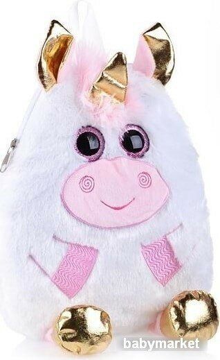 Стильный детский рюкзак-сумка в образе белоснежного единорога понравится юной моднице. Теперь ты сможешь носить с собой все самое необходимое в своем удобном и красивом аксессуаре, который можно использовать и как игрушку. Сумка - мягкая и приятная наощупь.