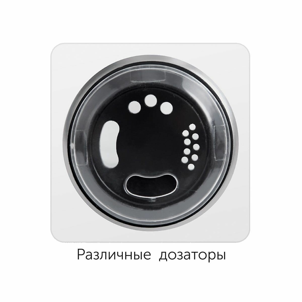 Емкости для специй расположены на эргономичной вращающейся подставке из хромированной стали.