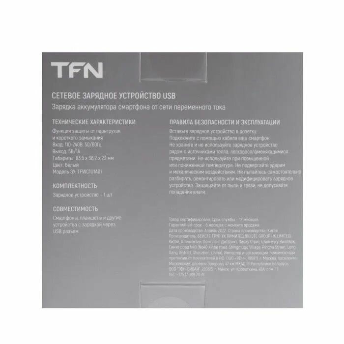 TFN предназначено для насыщения энергией смартфонов и планшетов. Гаджет обеспечивает стандартный режим зарядки с показателями максимального выходного тока в 1 А и максимального выходного напряжения в 5 В. Обратите внимание, что кабель для подключения в комплект не входит.
