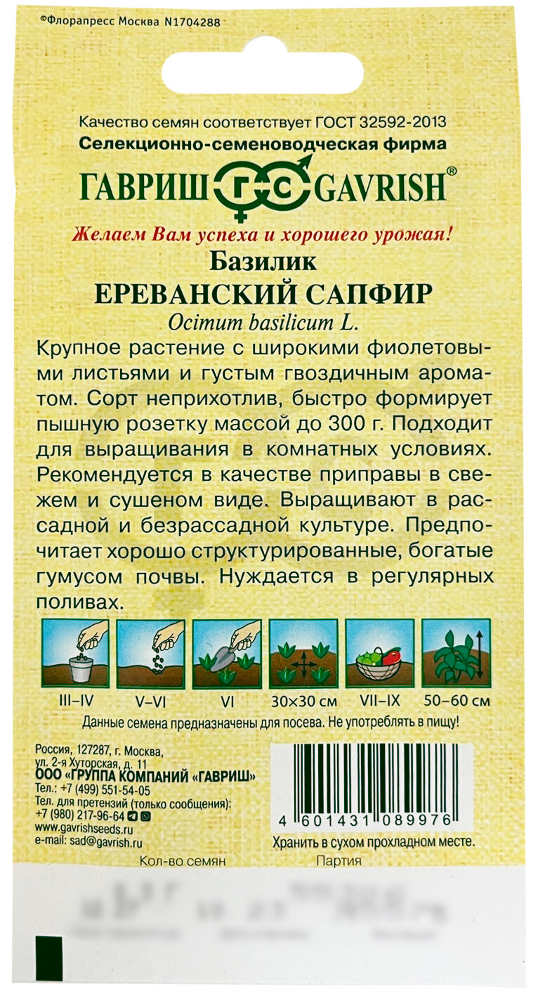 Базилик Ереванский сапфир 03 г ГАВРИШ