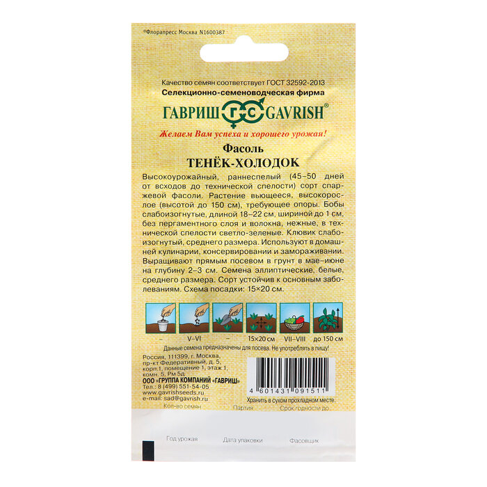 Фасоль Тенек-холодок 50 г ГАВРИШ