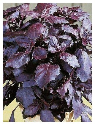 Фиолетовый базилик содержит больше эфирных масел по сравнению с зелеными сортами. Благодаря этому у него яркий насыщенный аромат, который особенно ценится в азиатской и кавказкой кухне. Сорт скороспелый, неприхотливый, с мощной раскидистой розеткой и крупными фиолетовыми листьями, массой до 300 г. Рекомендуется в качестве приправы в свежем и сушеном виде. Выращивают в рассадной и безрассадной культуре. Предпочитает хорошо структурированные, богатые гумусом почвы. Нуждается в регулярных поливах.