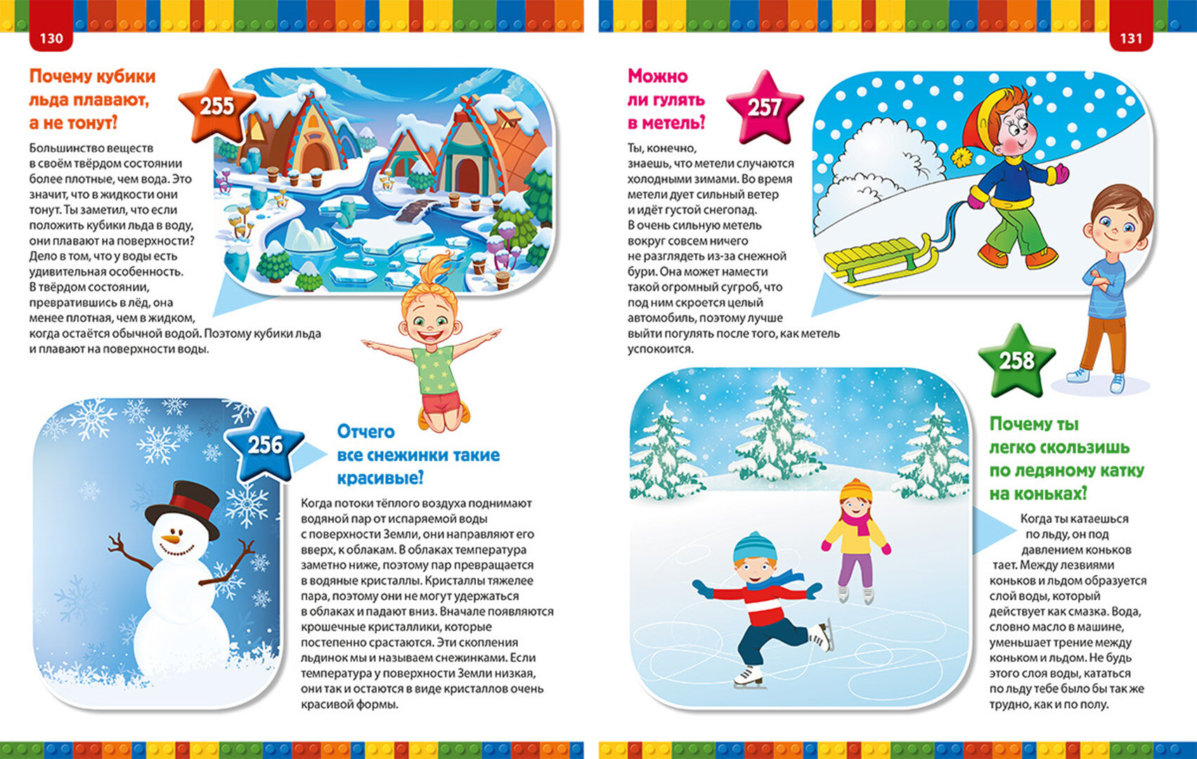 Книга познавательная и интересная! Что привлекло - в ней собраны ответы на вопросы детей из самых разных областей: о космосе, по географии, про животных, про человека, технику, быт и др. Ответы написаны простым, понятным языком. Бумага глянцевая, приятная на ощупь. Текст на протяжении всей книги сопровождается красочными иллюстрациями. Книга будет интересна и детям, и взрослым.