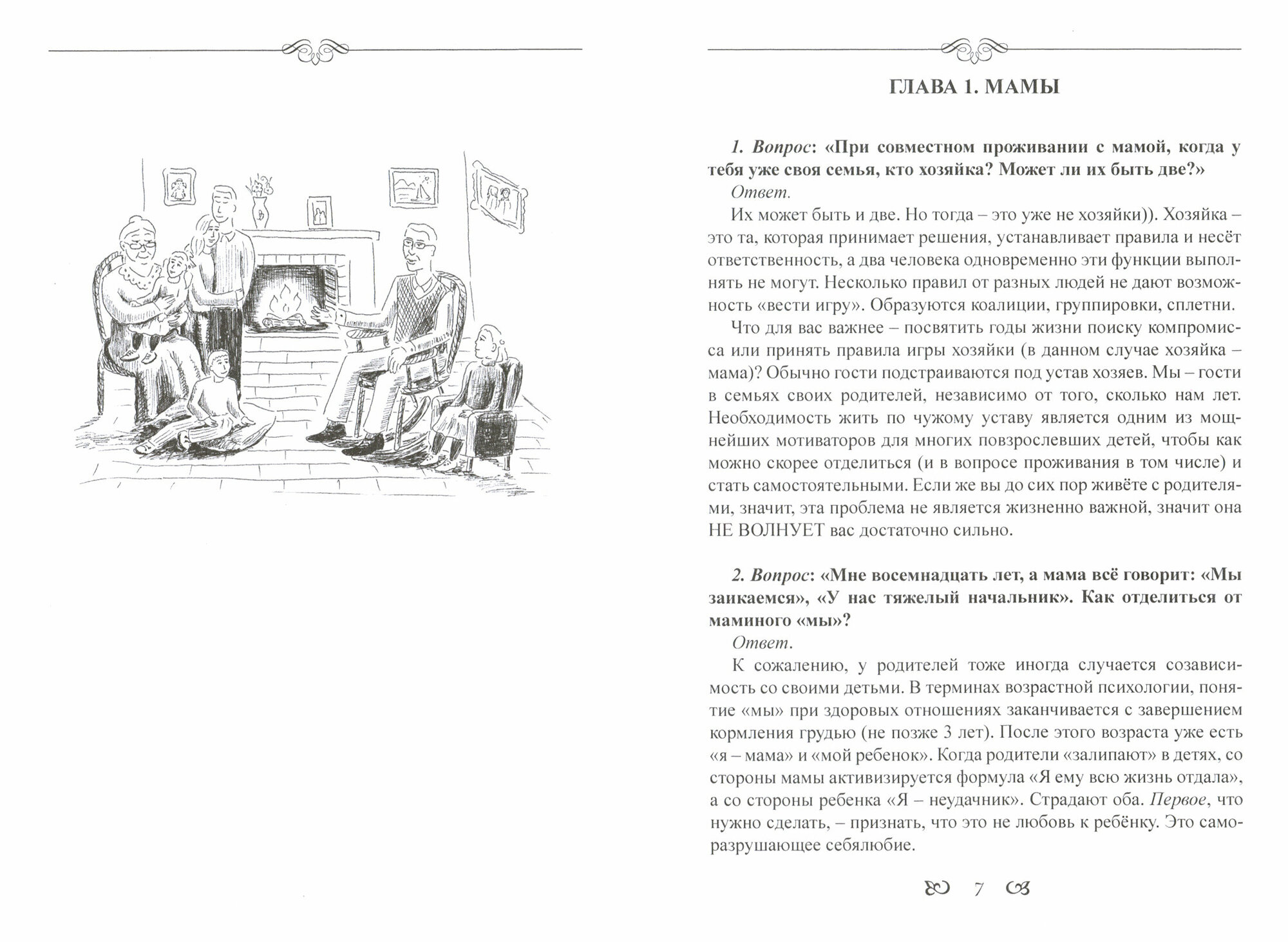 Прочитала книгу за пару дней. Не понравилось то, что книга сделана как вопрос - ответ, из за этого, очень сложно найти нужный ответ. Все таки мне больше нравиться читать по главам и с плавным переходом от темы к теме. После этой книги я задумалась, у меня есть конфликт с мамой, думала прекратить с ней общаться, но сейчас подумываю все таки поинтересоваться ее жизнью.