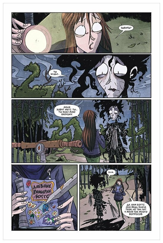 Если вы хотите окунуться в мир маленького городка с загадочным замком на холме, хотите поверить в чудеса и снова с детским восторгом смотреть на первый снег, то вам стоит прочитать этот комикс. История не только рассказывает о прошлых годах жизни Эдварда Руки-ножницы, но и сталкивает нас с его нынешней жизнью и новыми персонажами, которые могут стать как друзьями, так и врагами. Необычный сюжет, бертоновская аимосфера и положительные эмоции вам точно гарантированы!