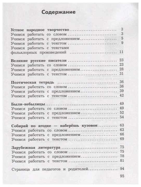 Цель работы с пособием - сформировать у третьеклассников умение читать и понимать тексты разных жанров, извлекать и анализировать нужную информацию, прогнозировать содержание текста по имеющейся информации, формулировать тему, отвечать на вопросы к тексту, высказывать собственное мнение о прочитанном. Система заданий, предлагаемая в данном пособии (работа со словом, предложением, текстом), последовательно развивает эти умения, пробуждает интерес к чтению, способствует общему развитию ребёнка, его духовно-нравственному и эстетическому воспитанию