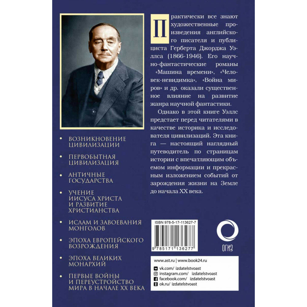 Однако в этой книге Уэллс предстает перед читателями в качестве историка и исследователя цивилизаций. Эта книга - настоящий наглядный путеводитель по страницам истории с впечатляющим объемом информации и прекрасным изложением событий от зарождения жизни на Земле до начала ХХ века.