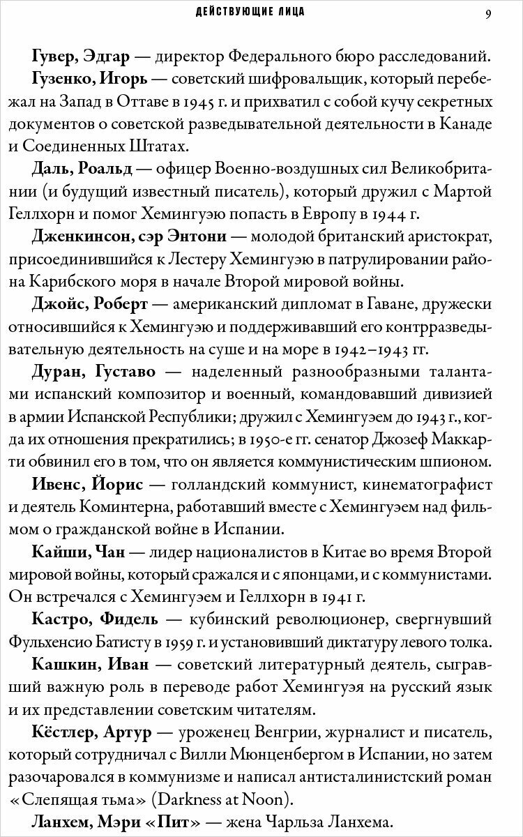 С военной и политической стороны книга была для меня скучновата, но автор разбавлял весь этот государственный хаос интересными историями личной жизни Хемингуэя и его друзей. В конце книги я поняла, что мне достаточно было прочитать последнюю главу, которая даёт краткий обзор жизни писателя и её трагического завершения. Но теперь, при чтении одного из романов этого эксцентричного Голиафа, я буду чуть больше понимать о чем он писал, что любил и за что рисковал своей жизнью. -