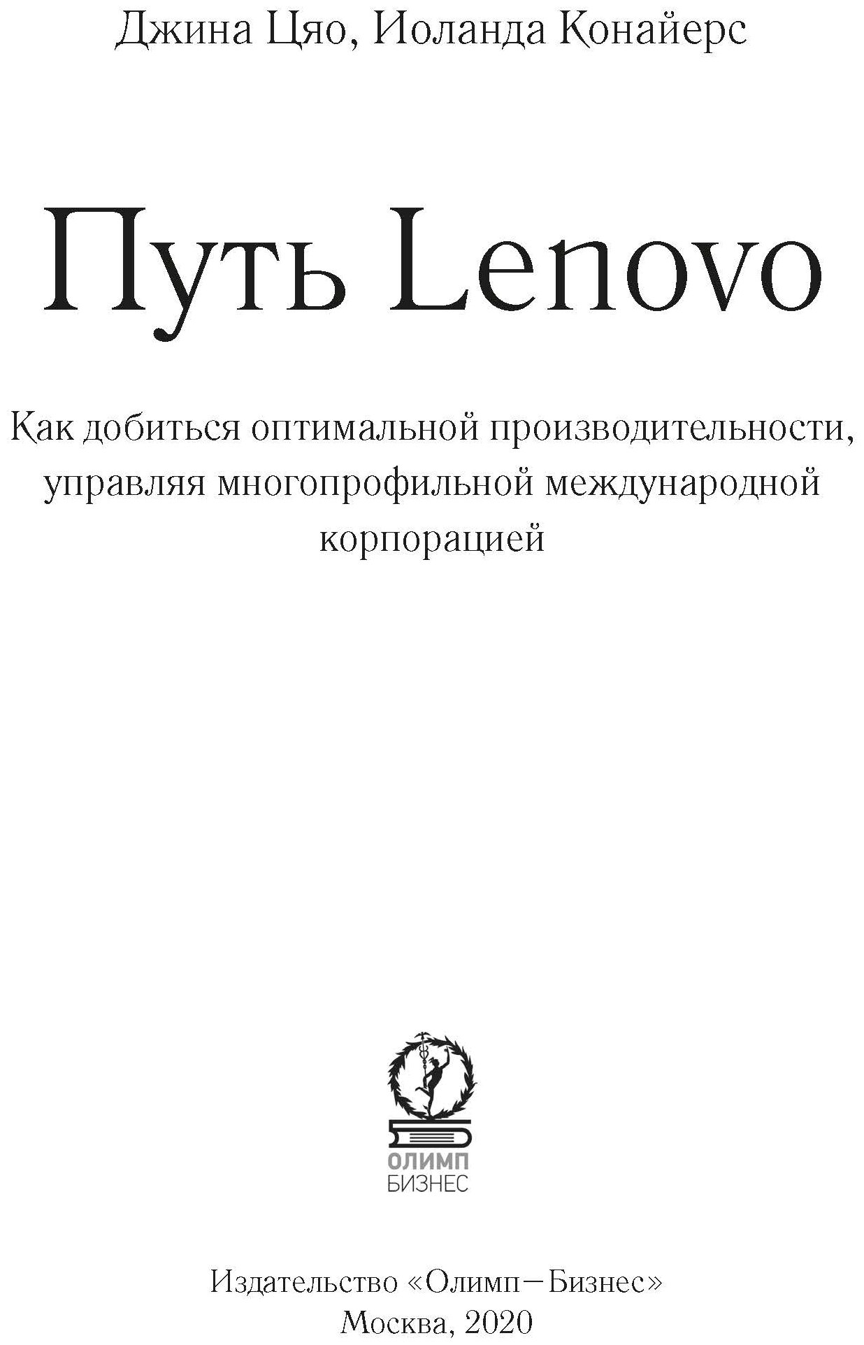 Путь Lenovo. Как добиться оптимальной производительности управляя многопрофильной международной корпорацией (Джина Цяо, Иоланда Конайерс); Олимп-Бизнес, 2019