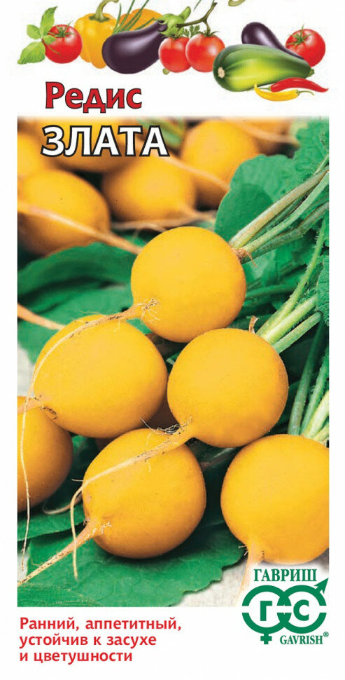 Семена редиса Злата от бренда Гавриш — это раннеспелый сорт с жёлто-золотистой кожурой и нежной мякотью. Благодаря высокой всхожести и устойчивости к стрелкованию, эти семена отлично подходят для выращивания в открытом грунте, парнике или даже на подоконнике. Модель Злата ценится за быстрый сбор урожая: всего 2 грамма в цветной упаковке обеспечивают полноценный посев на небольшом участке.