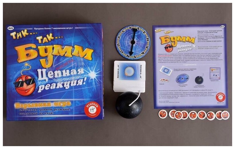 Тикающая бомбочка задает ритм, придает особый азарт и щекочет нервы! Игра проходит по часовой стрелке до того момента, пока фишка не будет положена на желтую карточку с темой - в этом случае меняется направление игры, а это значит, что увеличивается возможность совершения ошибки.