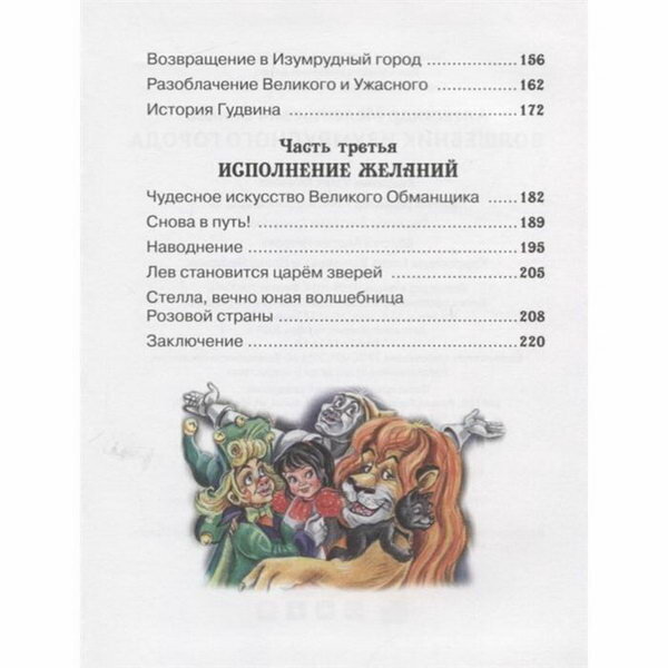 Очень достойное издание знакомого и любимого всеми произведения А. Волкова. Сама книжечка небольшого формата. Обложка с красивым яркими глянцевыми буквами. Всего 224 страницы, так что довольно объемная, не смотря на размер в целом. Внутри плотные страницы с приятными карандашными иллюстрациями. Картинок много, есть что рассмотреть! Красиво оформлены названия глав и номера страниц. Оптимальный выбор в соотношении цена качество, если ищите что-то в подарок. Рекомендую!