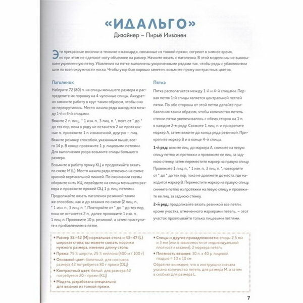 Книга \"Энциклопедия мужских носков\" станет замечательным подарком для тех ,кто ищет необычные схемы.Не смотря на название носки подойдут и девушкам т.к сетка представлена в трёх размерах ,а сам рисунок универсален.Есть описание техники вязания иглой , жаккардовые схемы и просто узоры. Рекомендую для покупки тем , кто уже имеет опыт т.к нет начального обучающего материала .