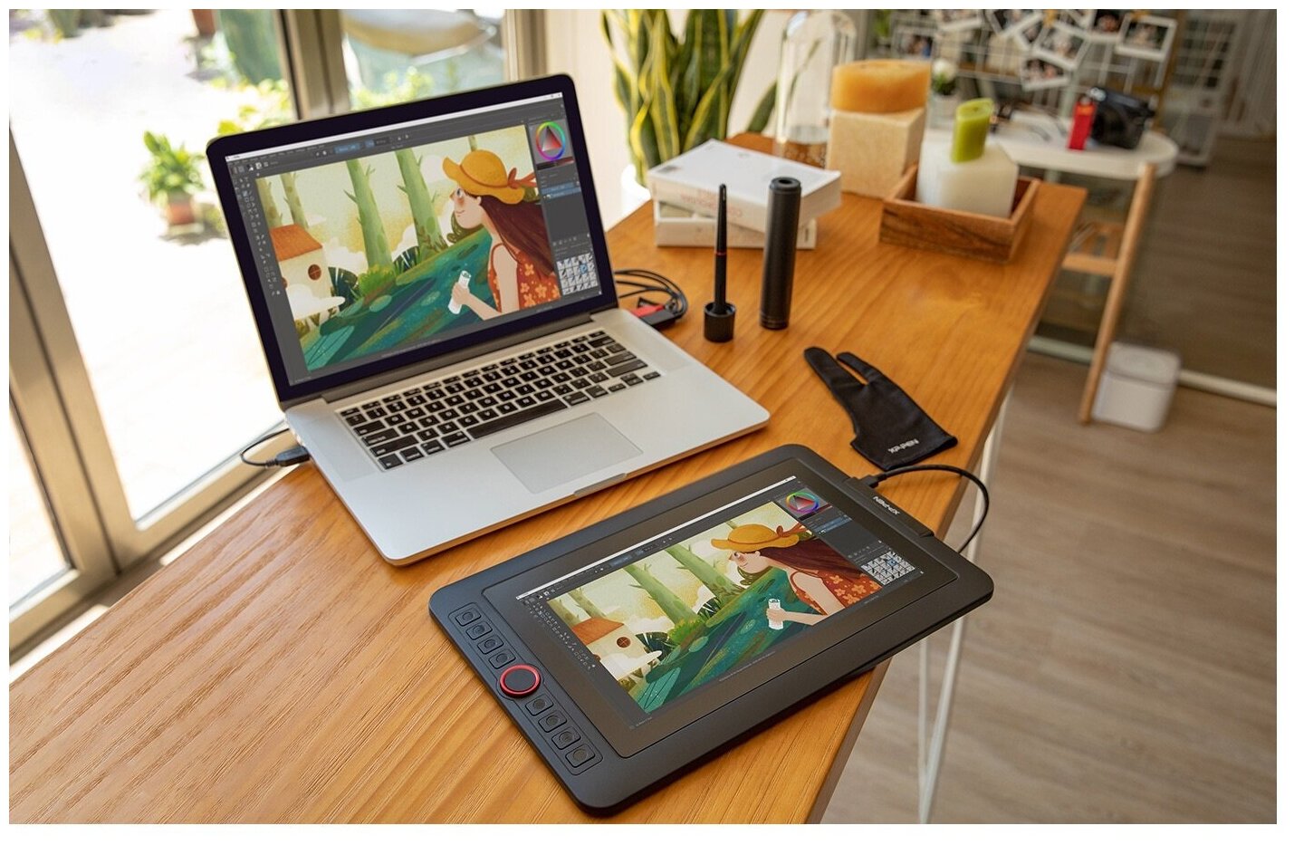 Графический планшет XP-Pen имеет удобный цветной дисплей с диагональю 11,6 дюймов, потому позволяет решать любые творческие задачи. Его разрешение составляет 1920х1080 точек, поэтому он подходит для черчения и рисования, создания анимации, дизайна. Преимуществом устройства считается беспроводное перо, для работы которого не требуются батарейки.