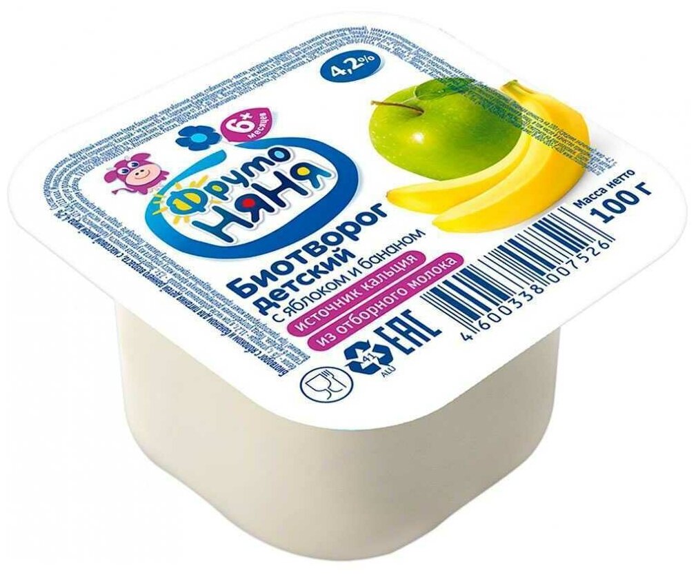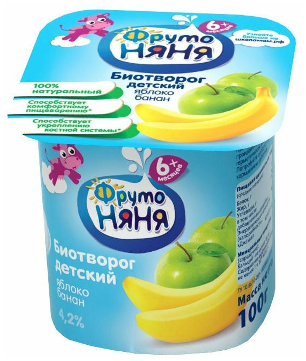 Биотворог детский ФрутоНяня с Яблоком и бананом 4.2% 100г ПРОГРЕСС